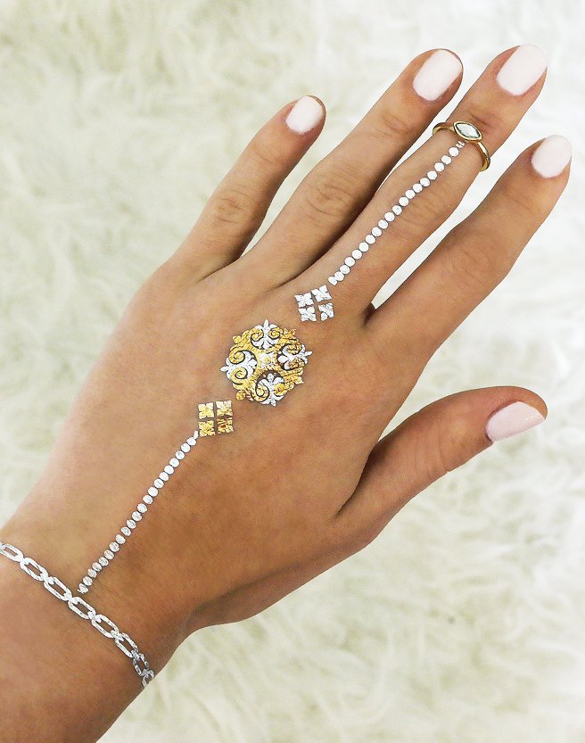 Legújabb, egyedi szolgáltatásunk gyerekeknek, tizenéveseknek és anyukáknak egyaránt. Homlokra, vállra, csuklóra és kézfejre is felhelyezhető. Többféle szín és többféle minta közül választhatnak a vendégek. Akár arcfestés vagy smink mellé is jól illik.